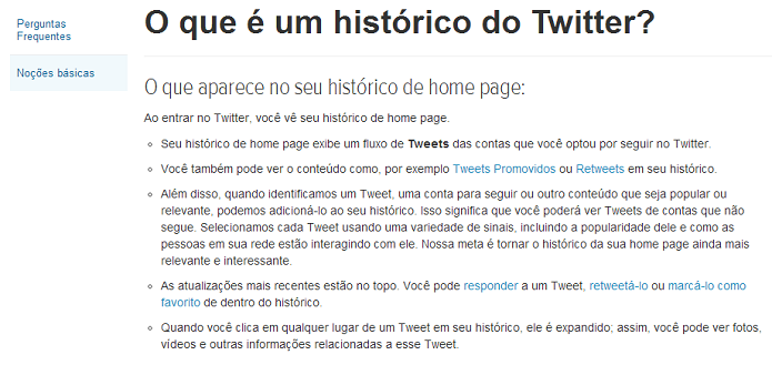 “Quando identificamos um tuíte, uma conta para seguir ou outro conteúdo que seja popular ou relevante, podemos adicioná-lo ao seu histórico. Isso significa que você poderá ver tuítes de contas que não segue", diz a página de ajuda do Twitter. "Selecionamos cada tuíte usando uma variedade de sinais, incluindo a popularidade dele e como as pessoas em sua rede estão interagindo com ele. Nossa meta é tornar o histórico da sua home page ainda mais relevante e interessante”, conclui.