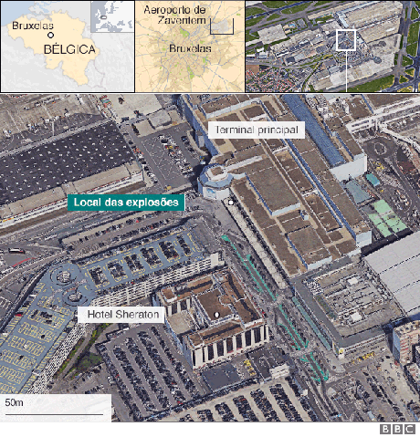 As duas primeiras explosões aconteceram por volta das 8h (4h de Brasília) no aeroporto de Zaventem.
